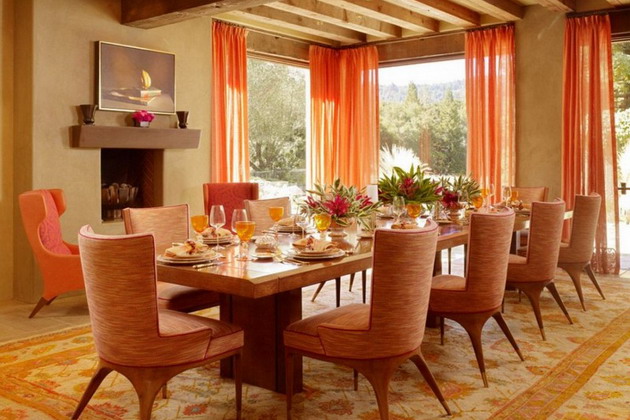 Этот цвет активно используется для создания классических, деревенских и этнических интерьеров. Для последних выбирают яркие оттенки персикового, а для первых двух – спокойные и сдержанные.