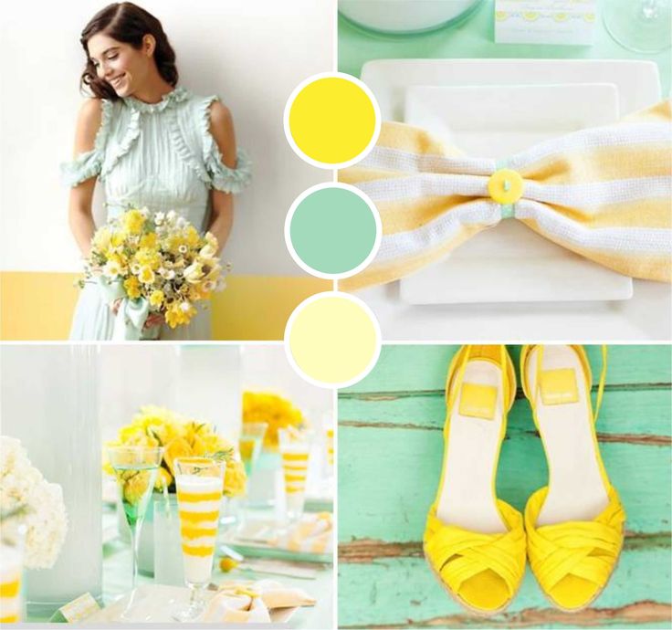 Если вы желаете воплотить образ счастливой и полной уверенности дамы, то эта идея для вас. Светло-зеленый в сочетании с различными оттенками желтого превосходно подойдет для солнечных летних дней.Желтый + синий, голубой