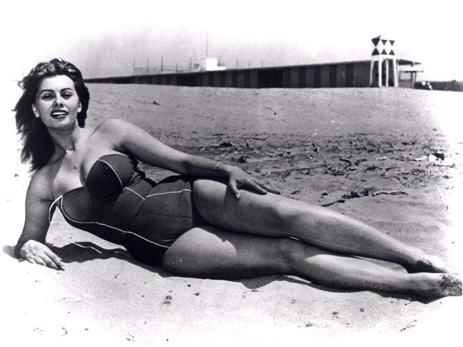 Софи Лорен в молодости поражала поклонников безупречными очертаниями своей фигуры, поразительно напоминавшей песочные часы и соответствовавшей классическим канонам того времени: ее тонкая (61 см) талия выгодно подчеркивалась пышностью бедер и бюста, окружность которых была равна 96 сантиметрам.