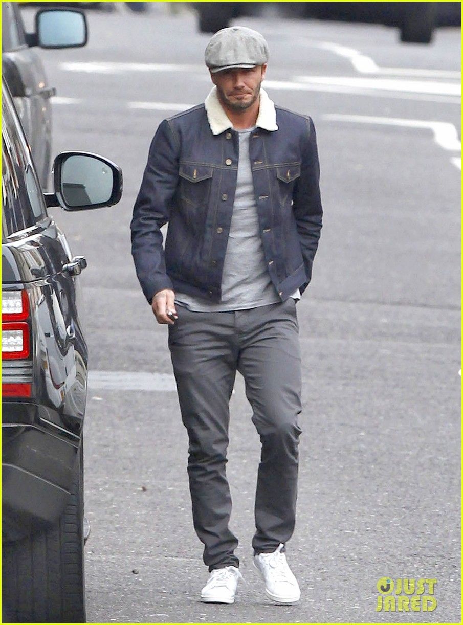 Переходя к брюкам, Бекхэм обычно тяготеет к джинсам узкого кроя. Я не говорю, что он всегда так поступает, но, глядя на его фотографии, кажется, что он предпочитает этот стиль.