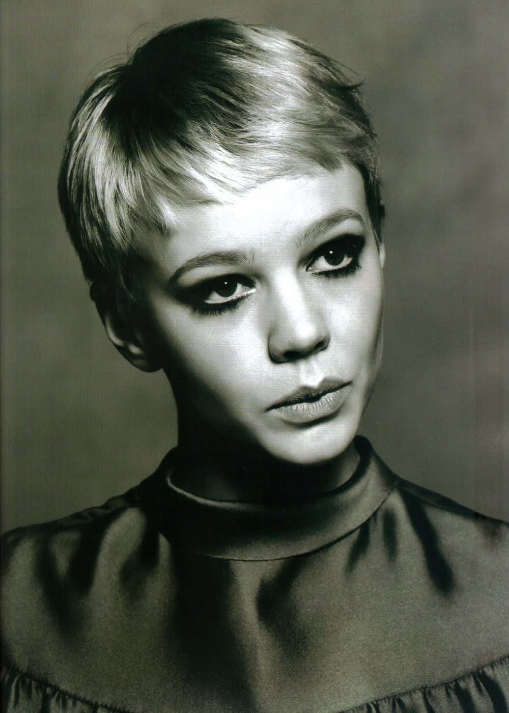 Фирменный образ Твигги отмечен тремя характеристиками: короткой стрижкой, тонкой фигурой и поразительно темными ресницами — качество, которое требует нанесения трех слоев туши.