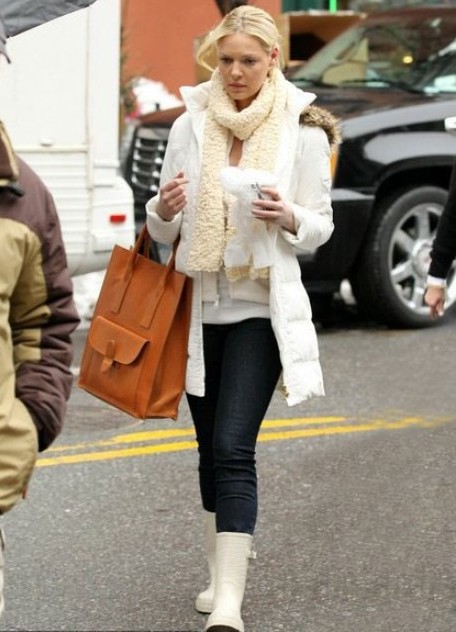 - Однотонный образ. Total white актуален как для праздников, так и для повседневных выходов. Белые скинни, футболка, кожаная косуха – лучший casual-наряд, который носит Джессика Альба, Дженнифер Лопес. Для создания яркого контраста фактур можно надеть воздушное белоснежное платье. Что касается обуви, подходят кожаные ботинки на шнуровке, классические нейтральные туфли.