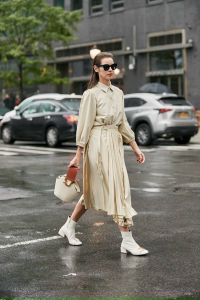 Сложно представить стильные образы, уличный стиль без многослойных ансамблей, тем более учитывая погодные капризы весны. Наряд из тренча, легкого платья в пастельных тонах, дополненный контрастной обувью, пользуется популярностью у многих стрит стайлеров. Важно не усердствовать с обилием аксессуаров – будет достаточно сумки нейтрального цвета и модных туфель с закрытым носком и открытой пяткой на устойчивом квадратном каблуке. Данная обувь выручит вас в будни, а также будет уместна в праздничных луках.