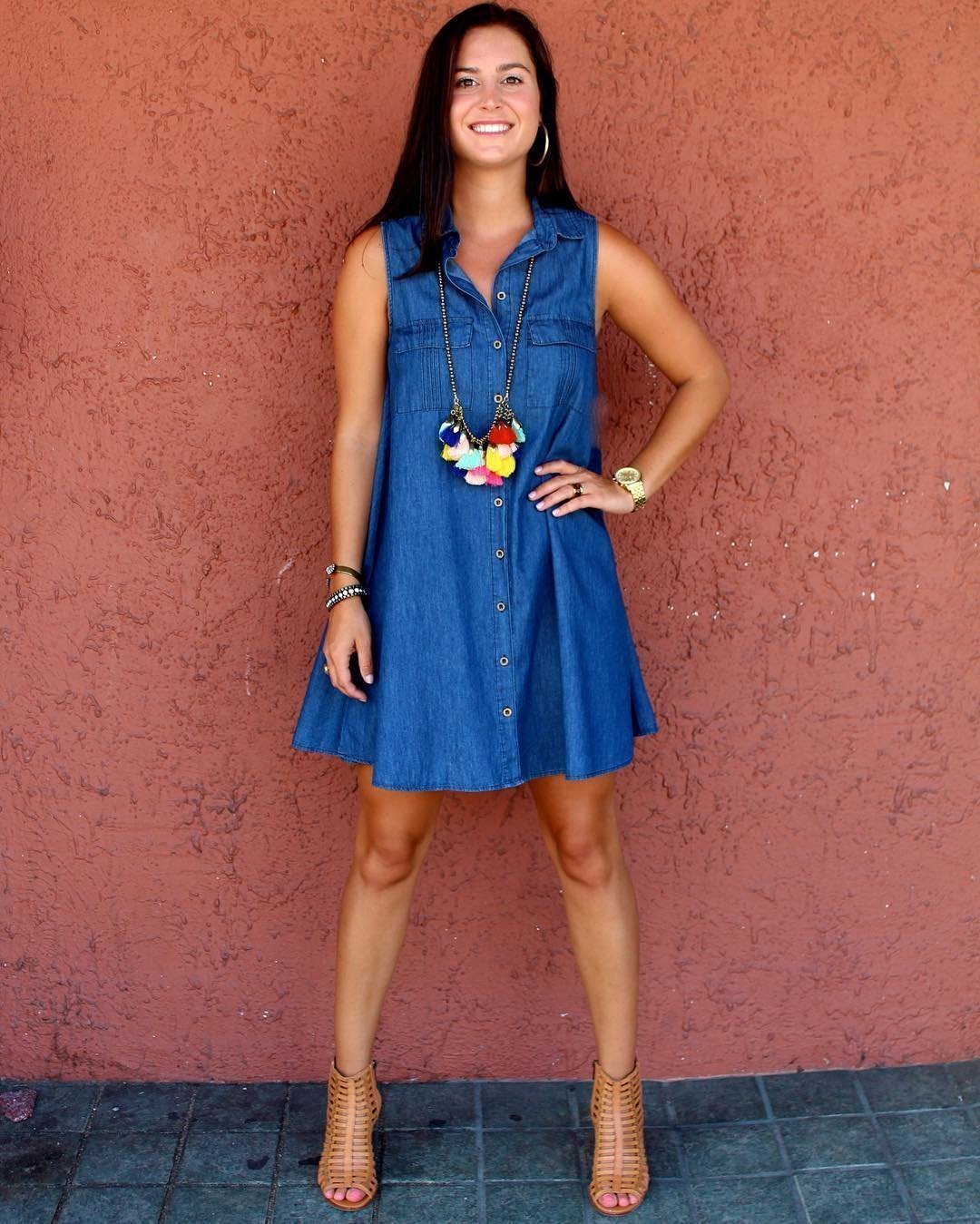 Этой осенью можно приобрести джинсовое платье любого оттенка и фасона. Оно самодостаточное, поэтому не нуждается в дополнительных аксессуарах. Главное – обратить внимание на обувь. Отлично подойдут босоножки на толстом каблуке или шпильке. Открытый носок с красивым педикюром всегда привлекает взгляды мужчин, как и стройная нога. Туфли-лодочки универсальны, поэтому с ними также будет неплохое сочетание.