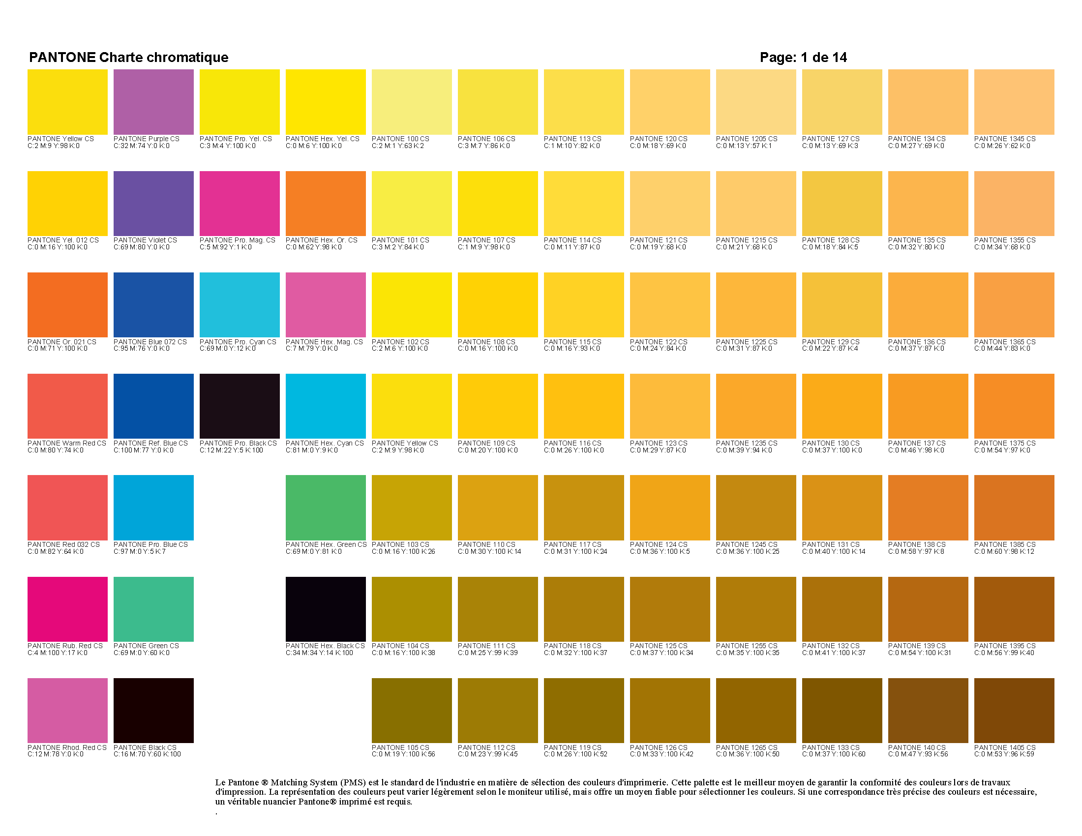 Оттенки желтого цвета составляют 136 тонов, согласно палитре Пантон, используемой для дизайна одежды. Чтобы получить желтую краску, используют натуральные или искусственные пигменты (охру, кадмий, ауреолин и т. д.).
