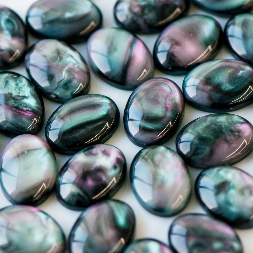 Кабошоны из стекла делают в самых разнообразных оттенках, в том числе полупрозрачных. Часто на них наносят ювелирную декоративную роспись, и они идеально выглядят с черным бархатом и в сочетании с матовым бисером. Каменные кабошоны ценятся необычными сочетаниями цветом и красивыми оптическими эффектами – иризацией и астеризмом. Особо ценятся кабошоны такого цвета и текстуры,которые редко встречаются в природе.