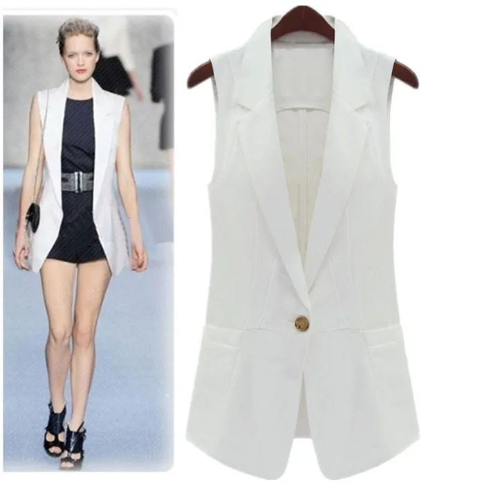 Весна-осень 2017, блейзер без рукавов, черный длинный женский жилет, элегантный модный жилет на одной пуговице kz050