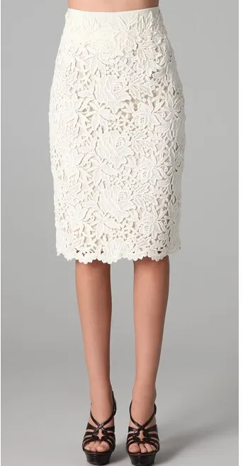 Отдавать предпочтение следует, прежде всего, прямым моделям юбок со средней длиной. Эти варианты смотрятся сдержанно и элегантно за счёт своего фасона, но лёгкий кружевной материал добавляет игривые сексуальные нотки. Подобные юбки практически универсальны — и для офиса, и для городской прогулки, и для торжественных мероприятий.