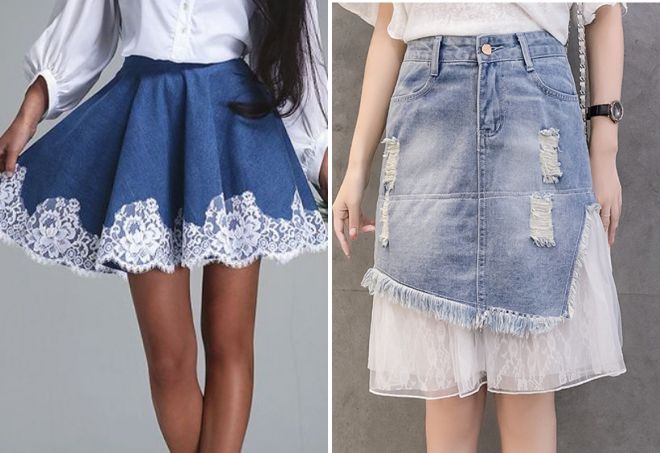 СПРАВКА! В последнее время одним из модных сочетаний является комбинация кружева с денимом и кожей. Эти, казалось бы, несочетаемые по многим параметрам материалы, вместе смотрятся стильно и гармонично.