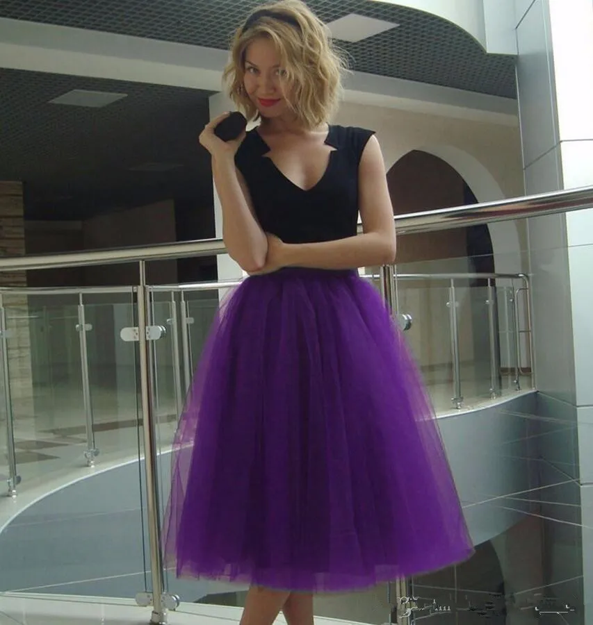 Девушкам невысокого роста стоит выбирать под юбку туфли на высоком каблуке или надевать модели чуть ниже колена. Благодаря этому юбка из фатина не будет визуально уменьшать их рост. У высоких дам больше возможностей, но им стоит отказаться от узких, очень коротких и расклешенных фатиновых юбок, которые больше подходят маленьким девочкам.