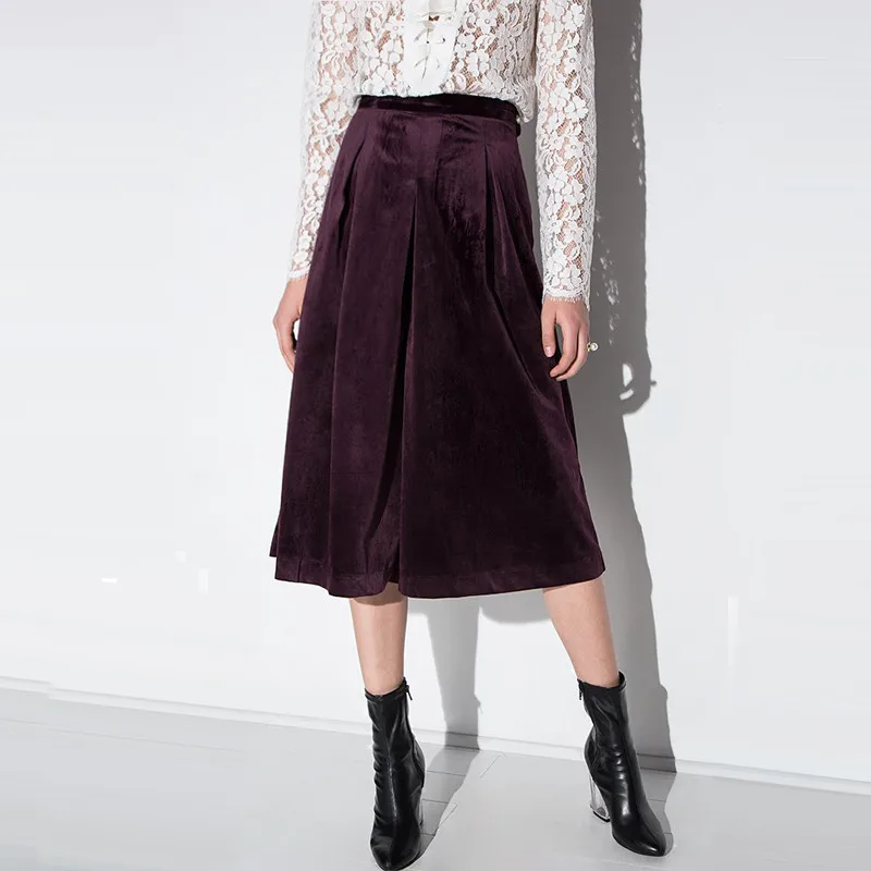 Для повседневного варианта это самая предпочтительная длина. Изделие чуть ниже колена из велюра смотрится сдержанно и в то же время роскошно. Выбрав для сочетания простую водолазку и сдержанный пиджак можно отправиться в таком образе на работу в офис, а вечером пойти в кино или театр и оставаться прекрасной.