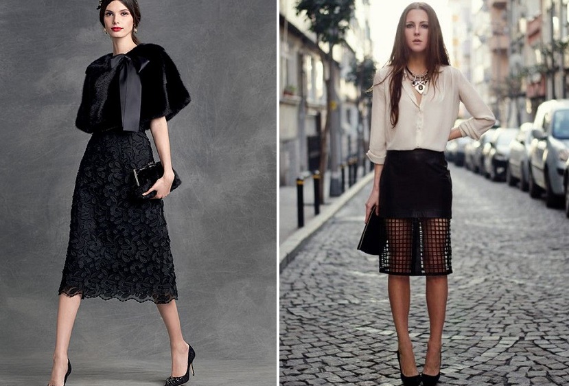 Например, на вечернем торжестве будет уместна черная кружевная юбка в пол. Юбка из того же материала, но длиной по колено или чуть ниже, идеальна для дневного гардероба. Комбинируя ее со строгой блузкой или приталенным пиджаком, можно создать безупречный образ для офиса.