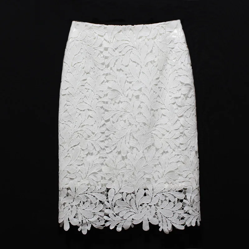 Чаще всего тонким кружевом декорируется нижняя часть. - Карандаш – облегающая модель наиболее популярна, поэтому она представлена массой вариантов отделки (подол, пояс, боковые части, вырез, баска). Кружевная белая юбка-карандаш придаст объема бедрам.