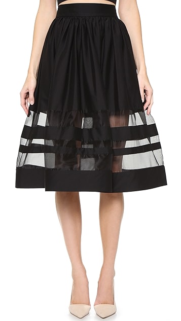 Юбка с прозрачными вставками сохраняет свойства обычной юбки и включает игру воображения. Такая юбка может иметь элегантную длину и демонстрировать красоту ног одновременно.