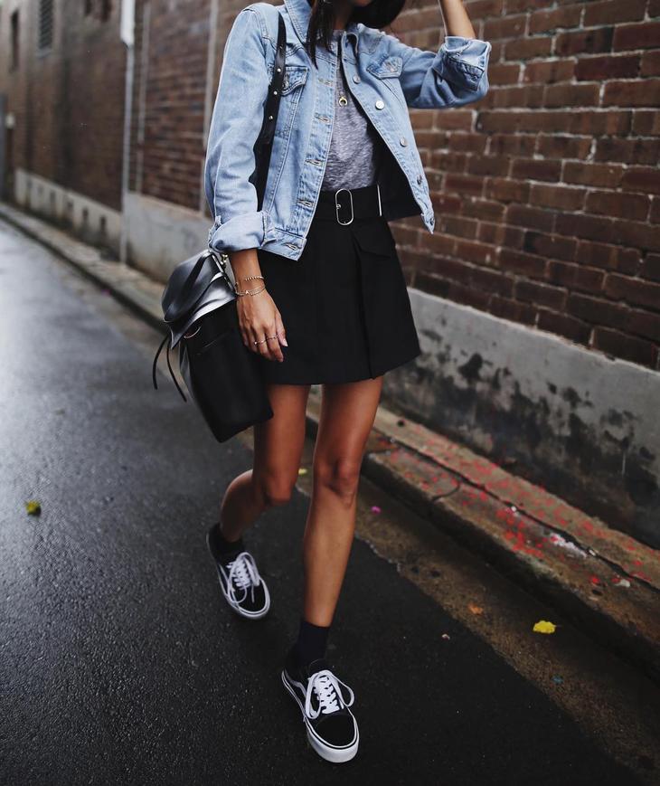 Это объясняется тем, что изделия на плоской подошве визуально сокращают рост. В сочетании с длинной юбкой такой вариант может быть провальным. Следите за тем, чтобы кроссовки подходили фигуре, а не портила её.