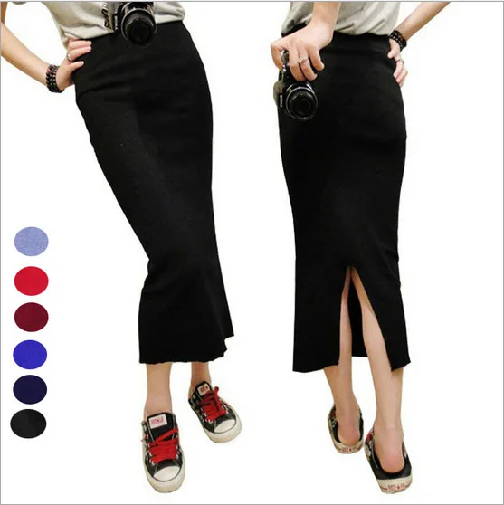 - Длинные юбки из трикотажной ткани подходят абсолютно всем. Плотный материал будет утягивать фигуру, а строгий фасон придаст образу женственность и элегантность.