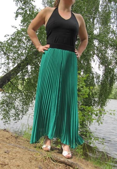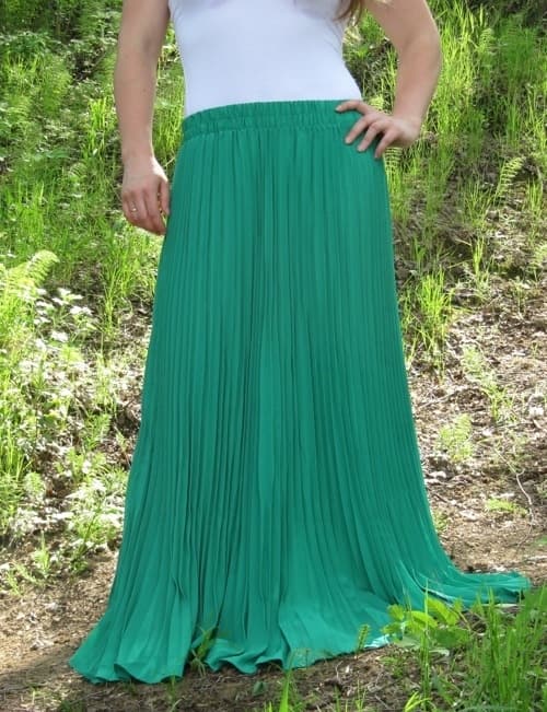 Юбки, выполненные из ткани в складку, подходят женщинам любого возраста и типа фигуры. Можно подобрать такой фасон, который спрячет лишние килограммы на бёдрах и зрительно нивелирует фигуру.