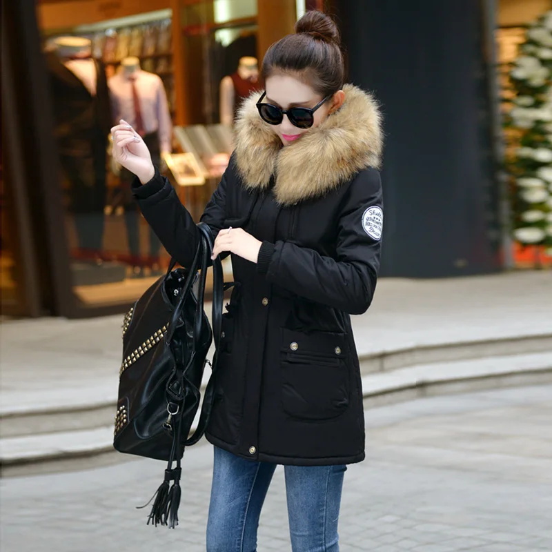 Зимняя парка с высоким воротом и съемным капюшоном для защиты от холодного воздуха и снега.